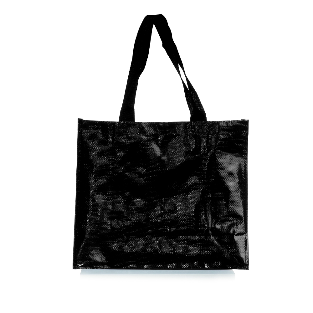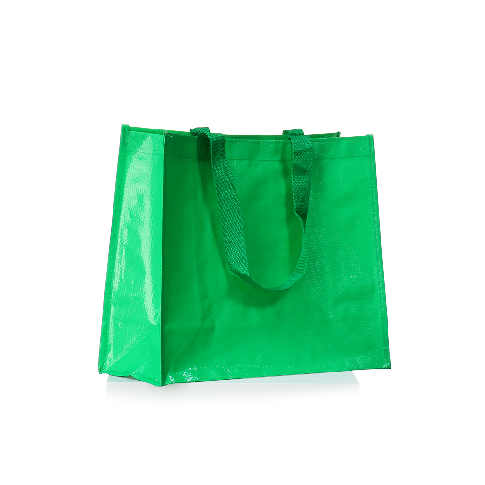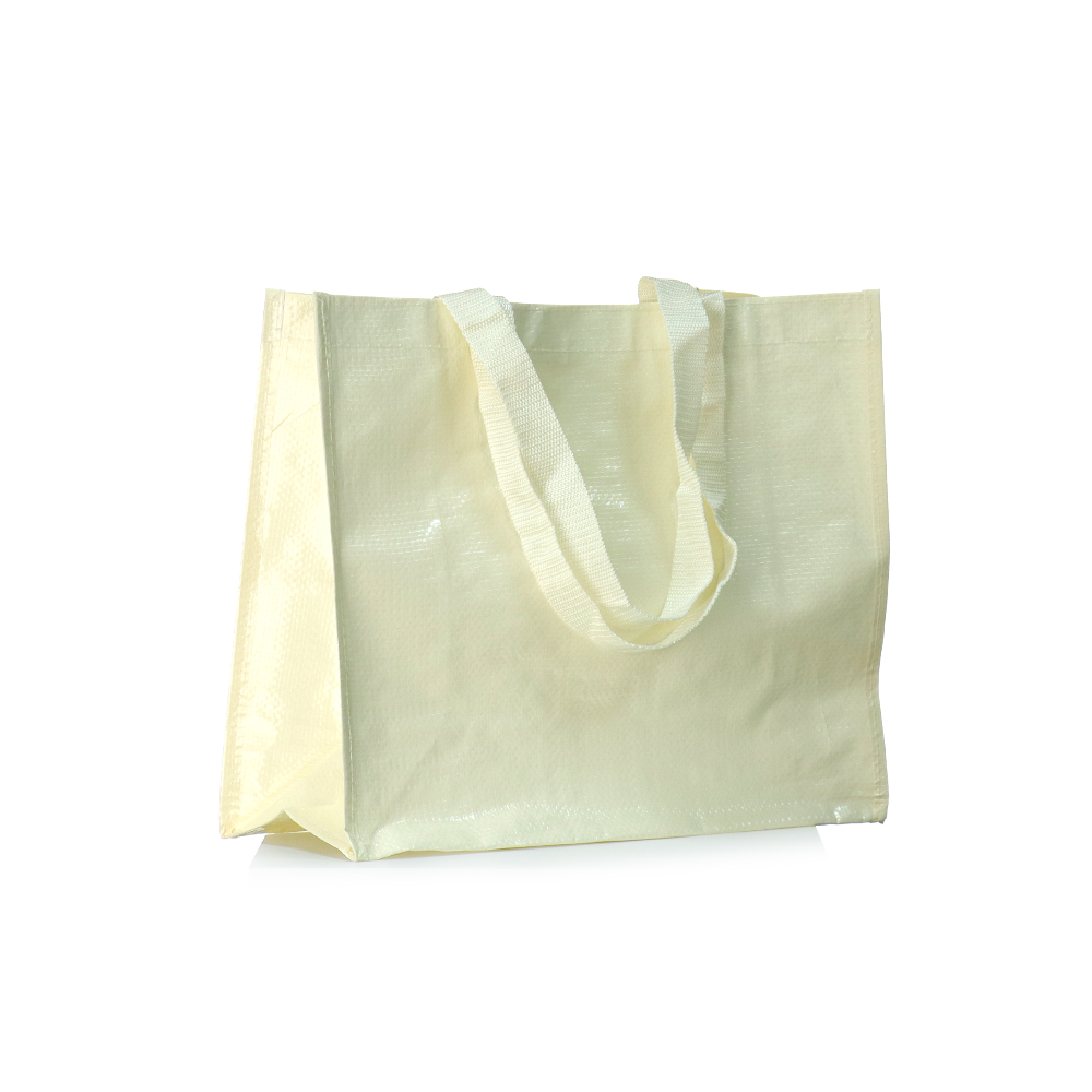 这款产品的材质为中号亮面覆膜编织袋,并带有一个携带方便的提手。